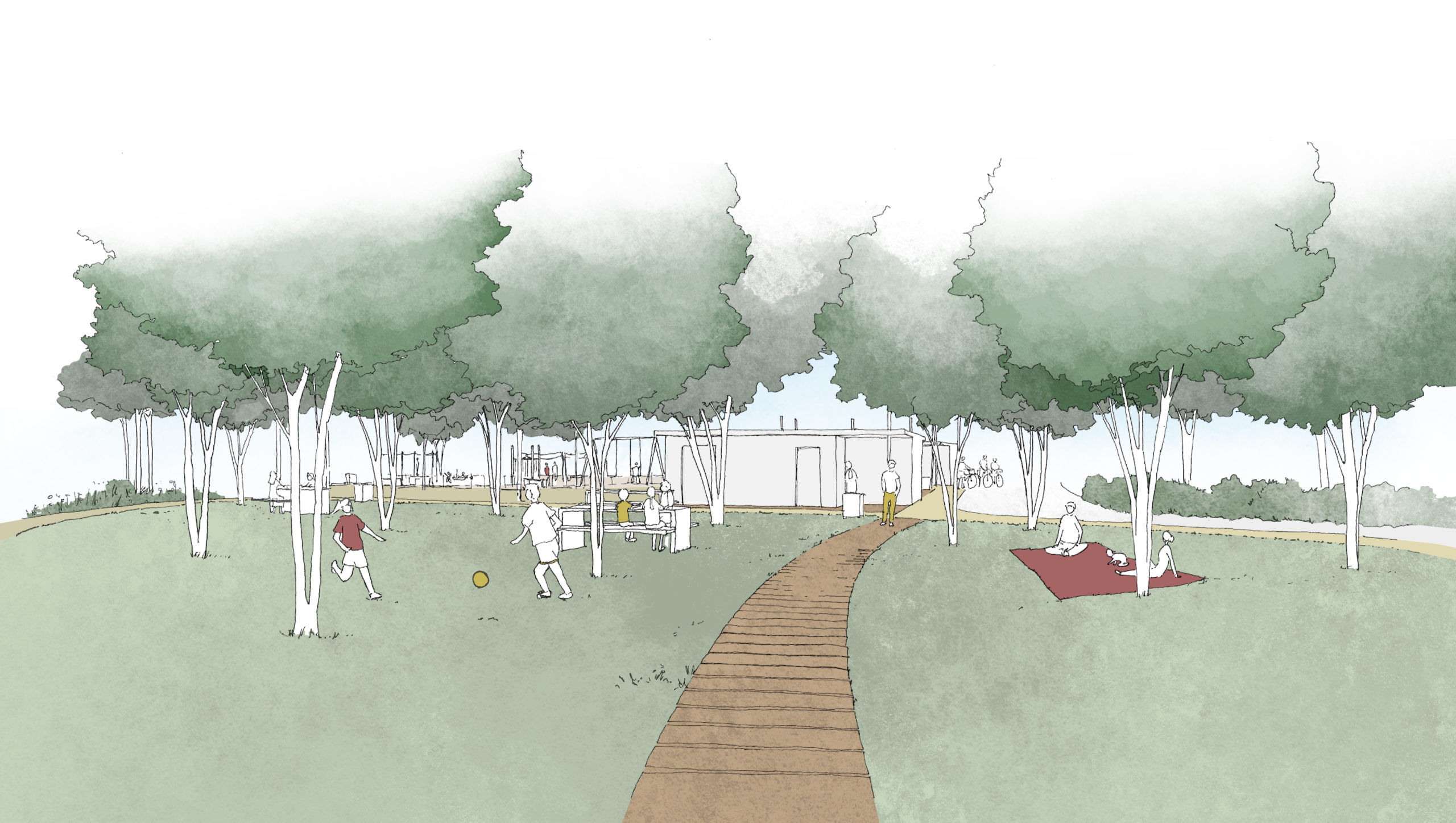Le projet propose une nouvelle place en cœur de bourg, l’entrée de bourg requalifiée, un square et un nouvel espace ludique, le jardin et parvis de la chapelle réaménagés, et un solarium entre village et champs. Chaque lieu se doit de porter l’identité commune, tout en apportant ses spécificités pour que l’expérience et la vie du village se trouvent enrichies de chacun. Matériaux, essences et savoir-faire locaux sont privilégiés. Sobriété et choix de détails significatifs sont notre ligne de conduite pour mettre en valeur le patrimoine existant, qu’il soit architectural, vernaculaire ou paysager.