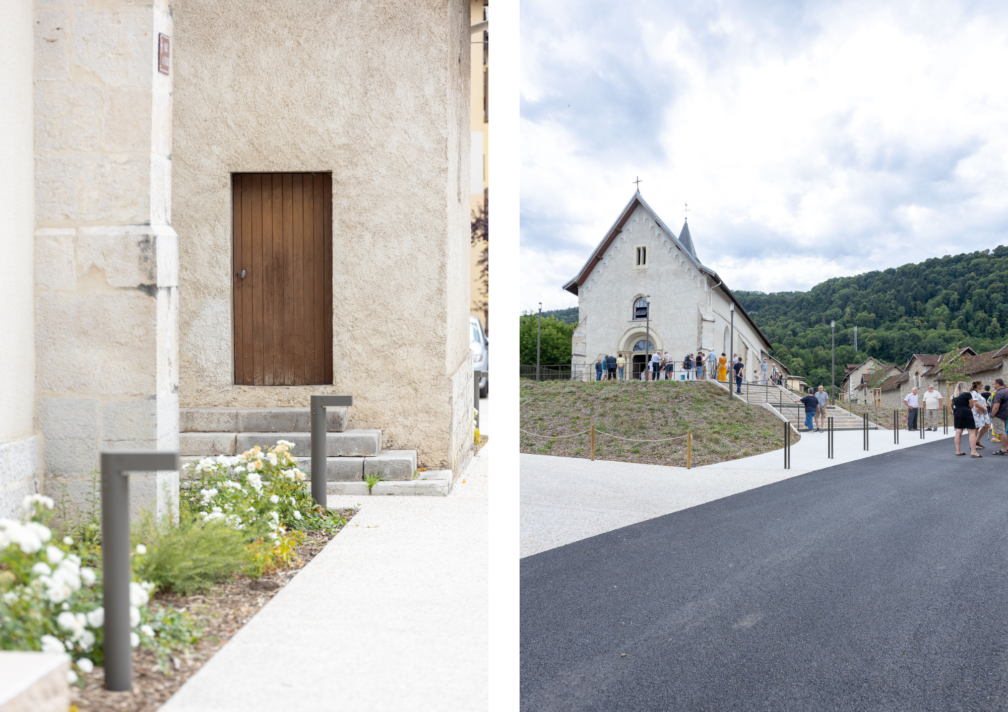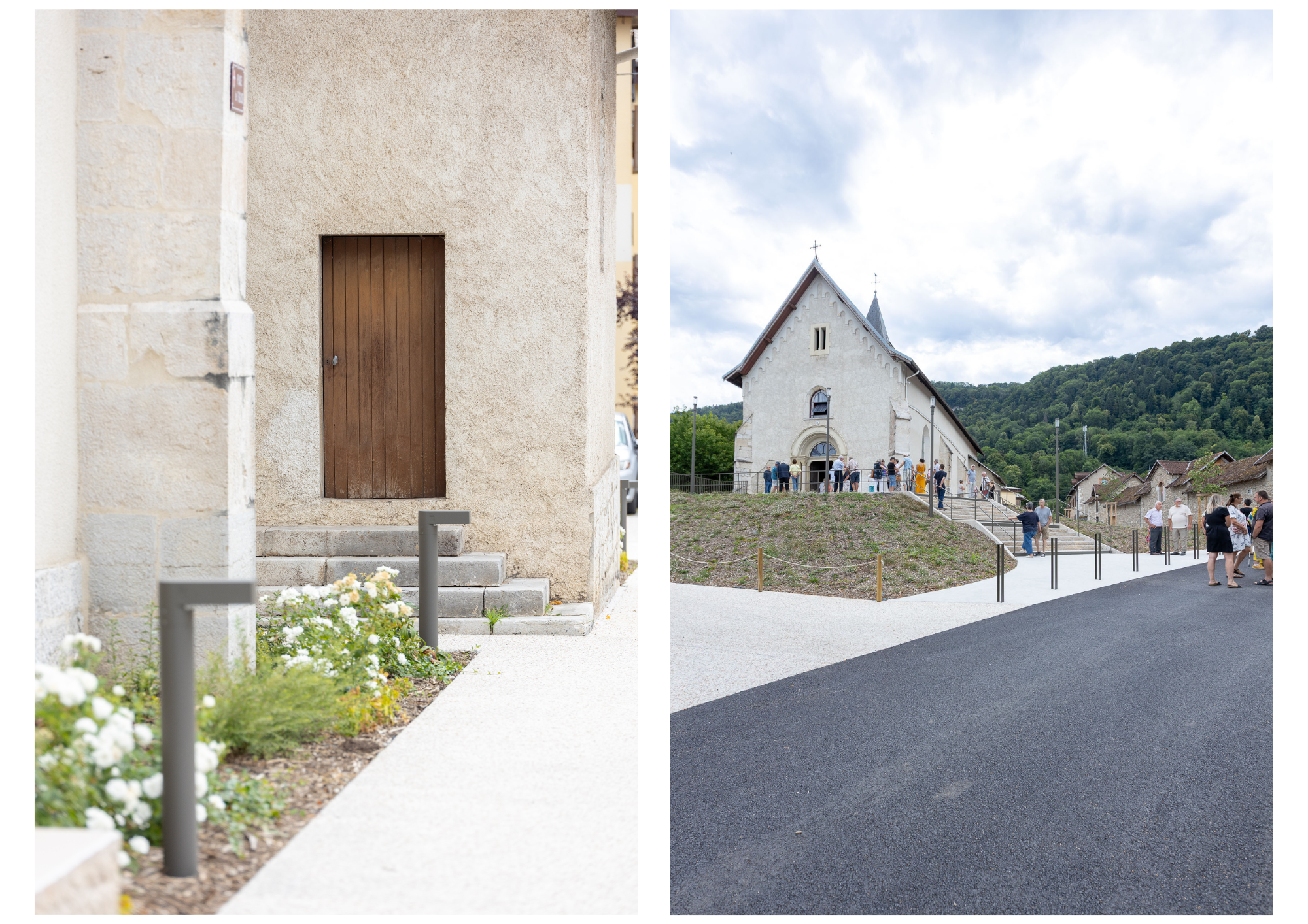 Le projet concerne la revalorisation de la place de l’église de Saint Béron et la mise en accessibilité PMR de cette église classée. Projet patrimonial, au cœur d’un territoire naturel protégé, la requalification de cet espace public permettra de retrouver l’esprit du lieu tout en répondant aux usages du quotidien des habitants.