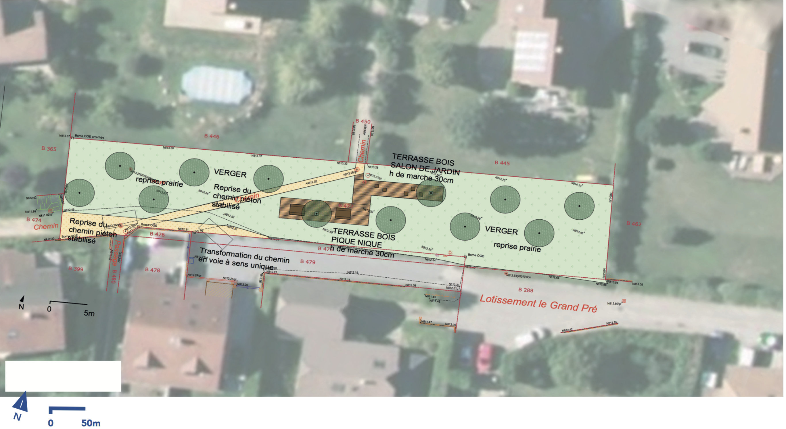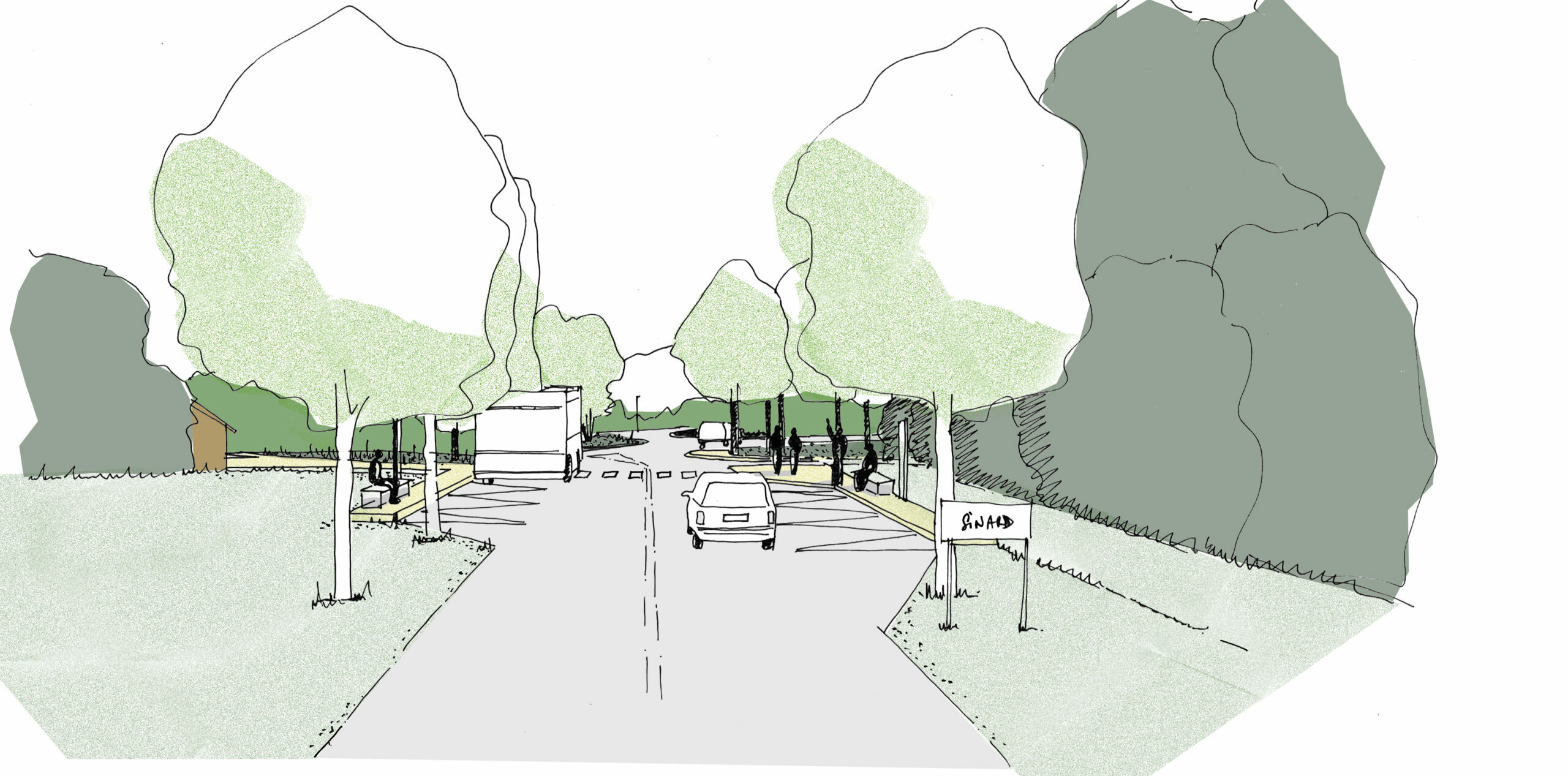 Suite à la première phase d’étude et de concertation, la phase 1 de requalification des espaces publics a commencé. Deux secteurs sont à l’étude pour cette première phase : l’entrée de ville nord avec son carrefour redimensionné et planté ; et un nouveau terrain multi-sports pour tous avec foot, basket, pétanque, jeux et belvédère.