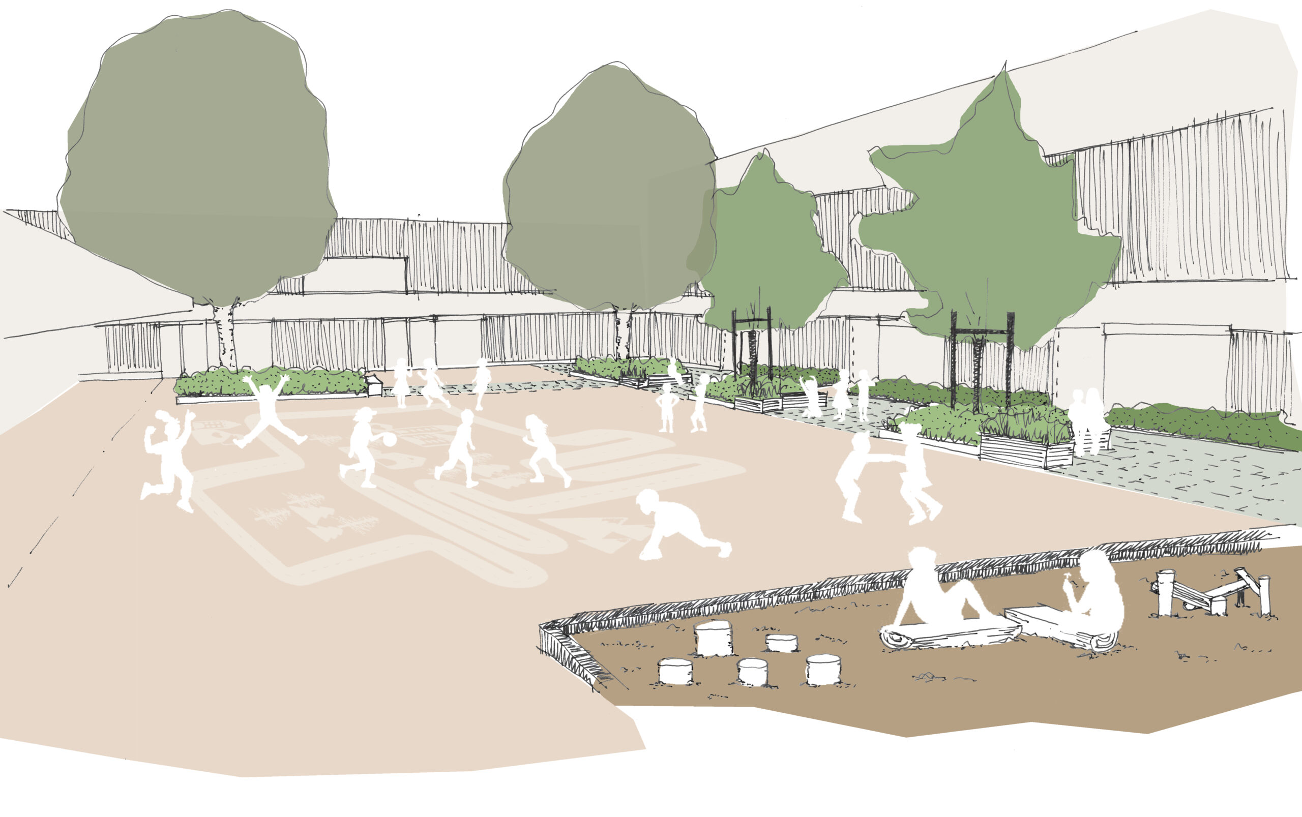 _En réponse à un programme à forte ambition, une attention particulière a été portée à la définition des limites de la résidence, à un traitement paysager qualitatif et inclusif pour ses futurs usagers.