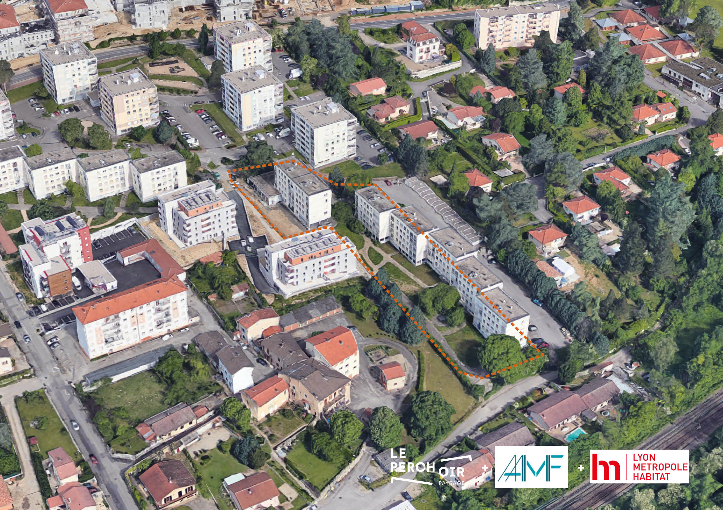 Le projet concerne le réaménagement des espaces extérieurs de la résidence Le Peronnet située à Vernaison, au sud de la Métropole de Lyon. Le site du projet se trouve au carrefour entre trois entités paysagères: plaine agricole, tissus urbain et plaine alluviale du Rhône. Le secteur en étude présente un visage composite entre maisons individuelles et ensembles de logements collectifs.