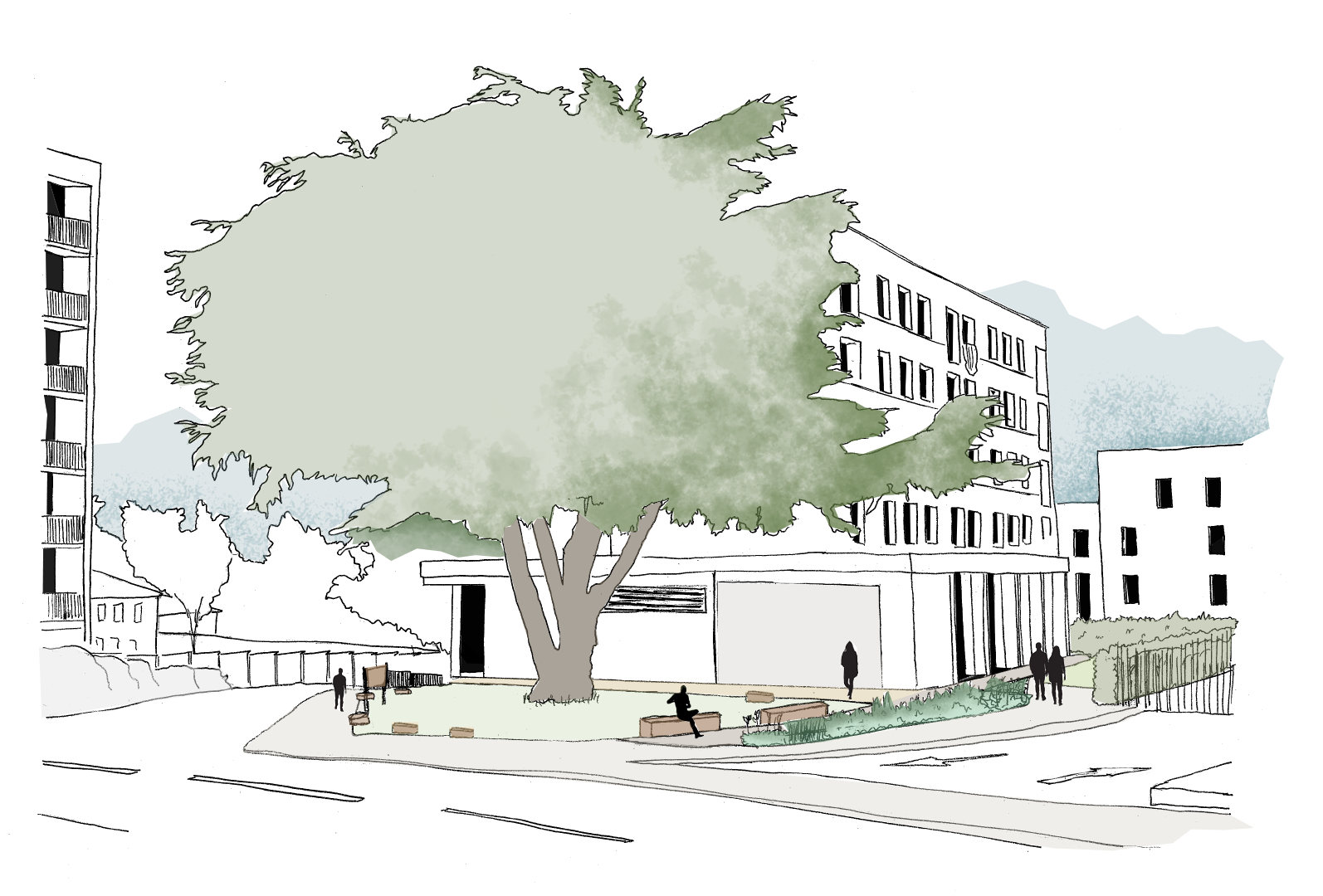 Plusieurs concertations publiques nous ont permises de coconcevoir avec les habitants un projet simple mais ambitieux. Faire revivre un espace stérile et donc peu exploité par ses habitants avec la mise en place d’un aménagement frugal mêlant cultures et générations, sous la fraicheur d’un paysage nourricier.