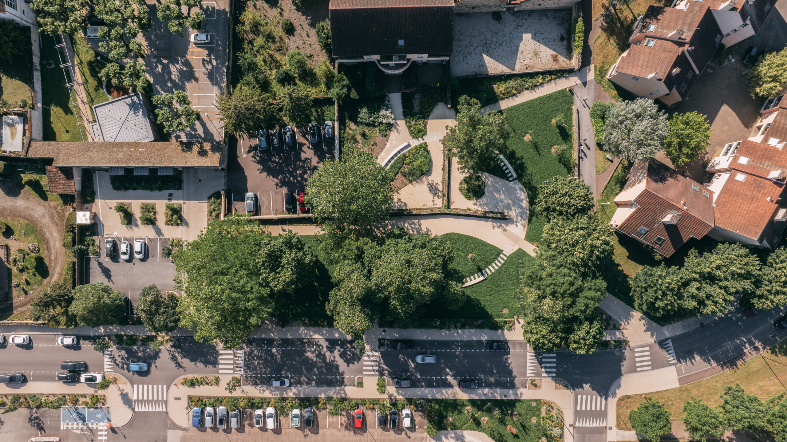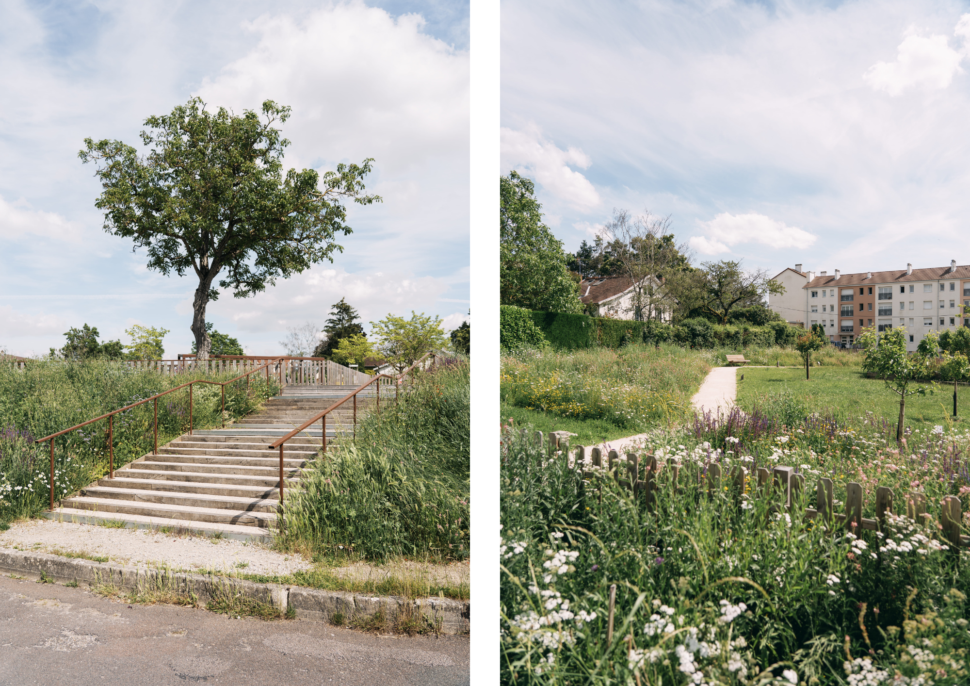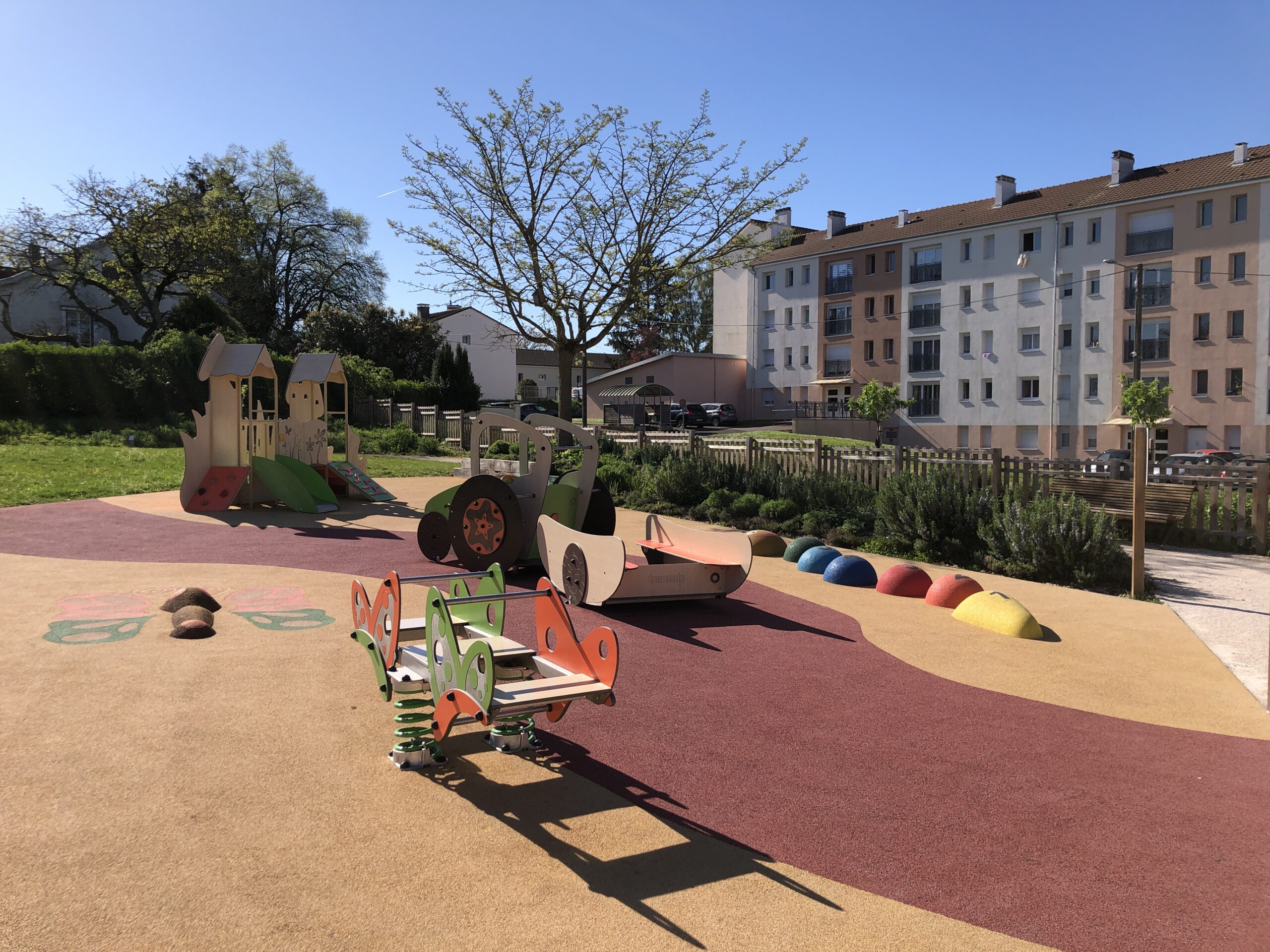 Les deux squares seront réaménagés à l’image de la commune, entre patrimoine, art et nature, offrant des jardins pédagogiques et des placettes d’activités se répondant. Arlequin deviendra le jardin du bourg, placette d’entrée du centre-bourg, entre histoire et usages contemporains alors que Bellevue sera le lieu pédagogique et ludique du quartier avec son verger retrouvé et son aire de jeux.