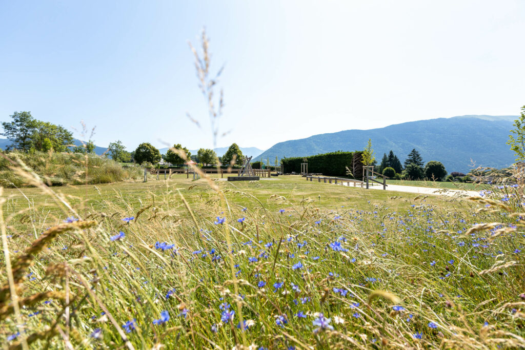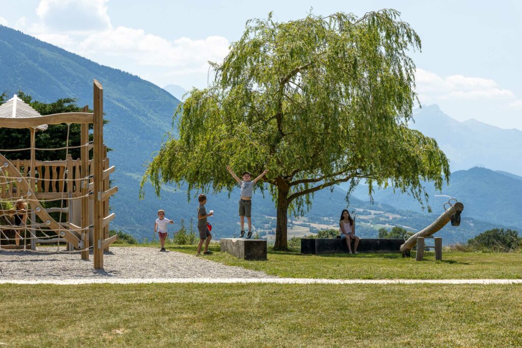 → Avec l’ouverture de la vue sur le lac de Monteynard, ce jardin devient un point central de la vie conviviale pour la commune de Sinard (38650).